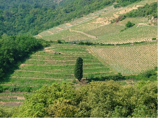 The steep terraced hills on which the vines grow make mechanisation impossible. The areas under cultivation are small, sometimes less than one hectare. The owners are mostly small independent winegrowers.