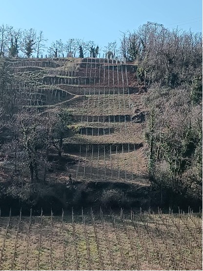 As you can see, this is not a case of extensive, productivity-focused agriculture. We are in a garden, a sloping garden that houses micro viticulture where everything is done manually and sometimes with the help of a horse. As a result, a micro production of wines produced “by the sweat of one’s brow” as we say in French.