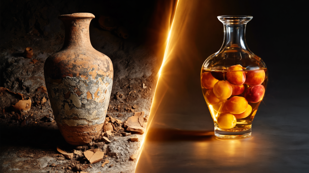 An Inspiration Rooted in Italian Antiquity Nestled within the quiet, mountainous landscape of Tamba City, Hyogo Prefecture, Nishiyama Shuzo has been brewing sake since 1849. While it is not unusual for a sake brewery to produce umeshu, the product this brewery released in 2006 departed significantly from conventional paradigms of what umeshu should be. The inspiration was found in Italy. During a visit, the brewery owner was captivated by the silhouette of the amphora, a vessel historically used in ancient Greece and Rome. This classical form was thoughtfully reimagined in a glass bottle, with whole, large Nanko plums sealed inside. Accompanied by a transparent custom ladle, it created a mindful serving ritual rather than a simple pour. Named “Plum Tonic Umeshin,” the creation was envisioned as more than just a beverage; it was designed as an experience that unfolds the moment it is served.