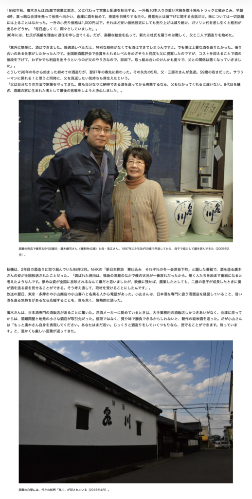 “But I asked myself: would I regret never trying the work I was raised to inherit? I was still young; if things failed I could close the kura then and find another job. After much soul-searching I chose to return to Aizu.”