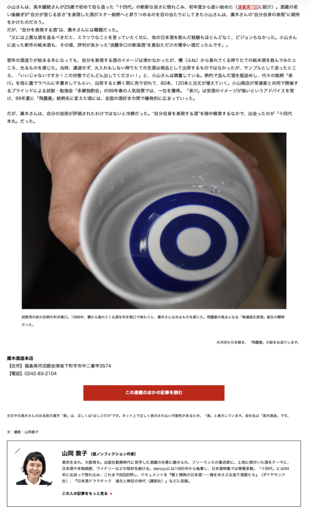 Still, Hiroki calmly felt it wasn’t his skill that was being praised. While groping in the dark for “a sake that showed himself,” he encountered Juyondai Honmaru.